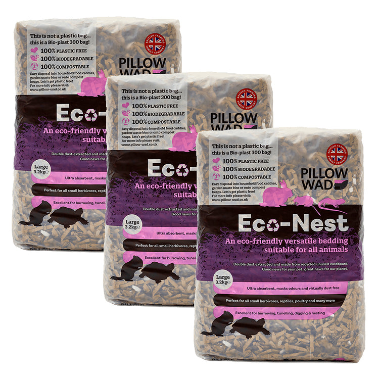 Pillow Wad Eco-Nest Eco-Friendly Animal Bedding is wonderfully absorbent and virtually dust free, helping to mask the odours that come hand in hand with owning pets.