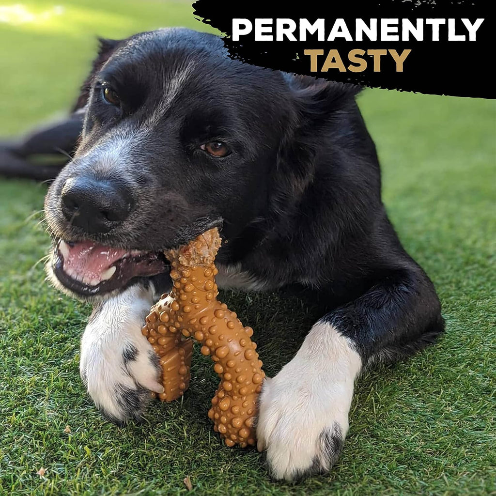 All dogs are different & vary in size and chew strength, so pick a TastyBone chew toy which is larger than your dog’s mouth. If you have more than one dog in your house, pick a chew suitable for the largest, strongest chewer. This TastyBone is not suitable for puppies or designed to be digested. Always supervise your dog when chewing TastyBone, remove and replace once it is smaller than your dog’s mouth. It is the responsibility of the dog owner to ensure this product is suitable for their dog.