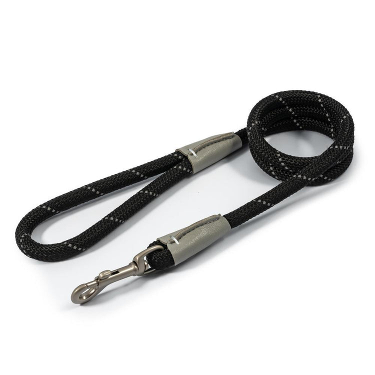 Ancol Viva Dog Rope Lead Snap Hook Reflective Black 2 Sizes