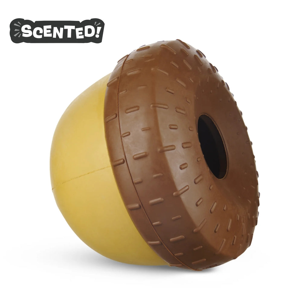 This acorn dog toy is perfect for pups who like to squirrel away their treat treasures. Acornucopia is made with peanut-scented natural rubber with a gnaw-friendly texture for satisfying chew sessions. You wanna get really nuts? Add some snacks to this wacky-wobble treat dispensing acorn, and watch your dog go nuts!