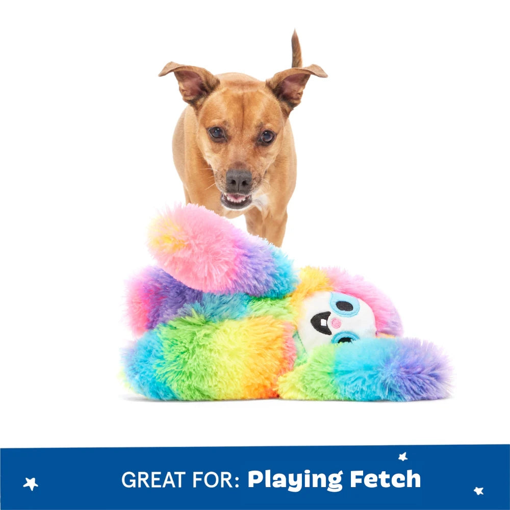 Kick it with the original tree hugger! Your furry flower child will love this rainbow tie-dye sloth dog toy. He's fresh outta Woofstock and ready for some peace and fluff. From his extra-long arms to his crazy crinkle body, there are so many far-out ways to jam with Good Vibes Gary. Plus, give him a squeeze to hear some of his grooviest squeaks. And with long and strong hair, this hippie's not getting a haircut, unless your flower child wants to shred it, man. After all, with Good Vibes Gary, it's all about making ruff, not war!
