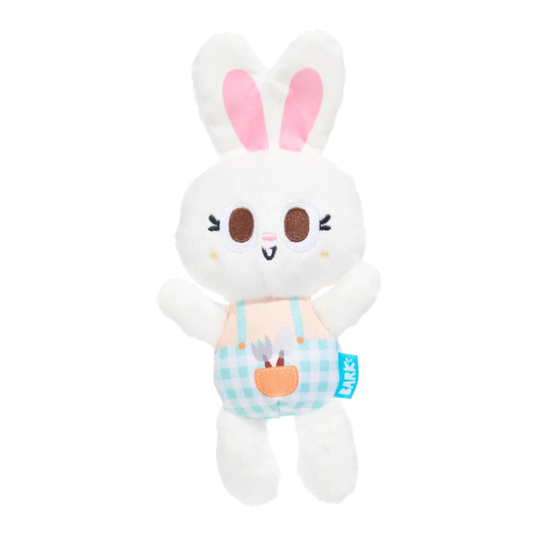 A garden-themed plush bunny that brings playful crinkles and squeaks to cuddles, tosses and gentle tugs.