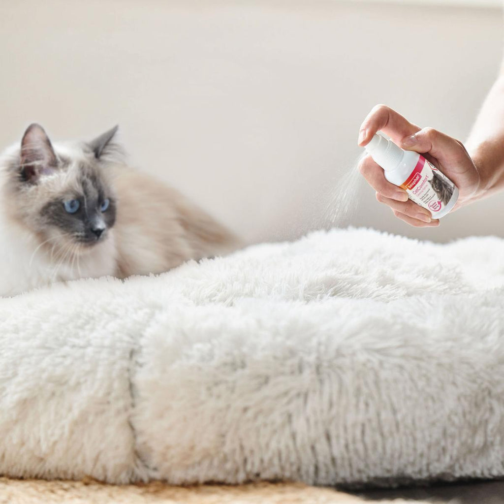 Beaphar CatComfort calming spray is ideal for use around the home and while travelling. Spraying on your cat’s bed will help your cat feel settled and reduce problem behaviour, and it can also be used in cat carriers. Long-journeys and visits to the vets or catteries can be a stressful experience for cats, so spraying the inside of the cat carrier 15 minutes before the journey will help your cat feel less anxious.