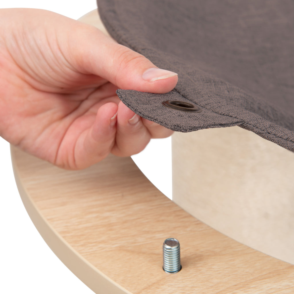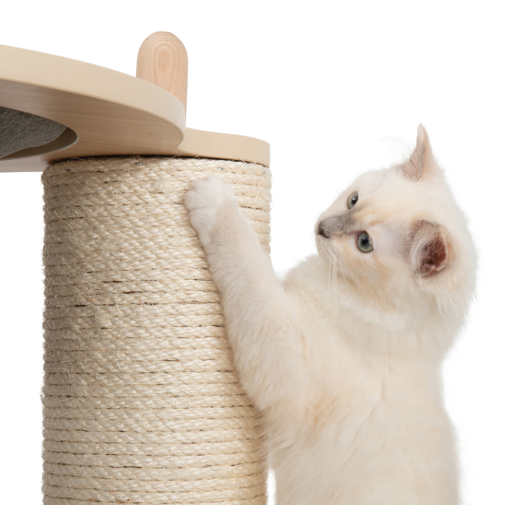 The Catit Vesper Treehouse is a modern, nature-inspired playground for adventurous cats and kittens. At the heart sits our sturdy tree trunk, a thick, natural scratching post, accessible on all sides from stable lounging platforms. The furniture’s elegant wooden poles make up the tree branches, suspending your cat’s comfy fabric hideaway and hammock perch. Dressing the branches with a variety of toys is a great way to enrich your cat’s playtime.