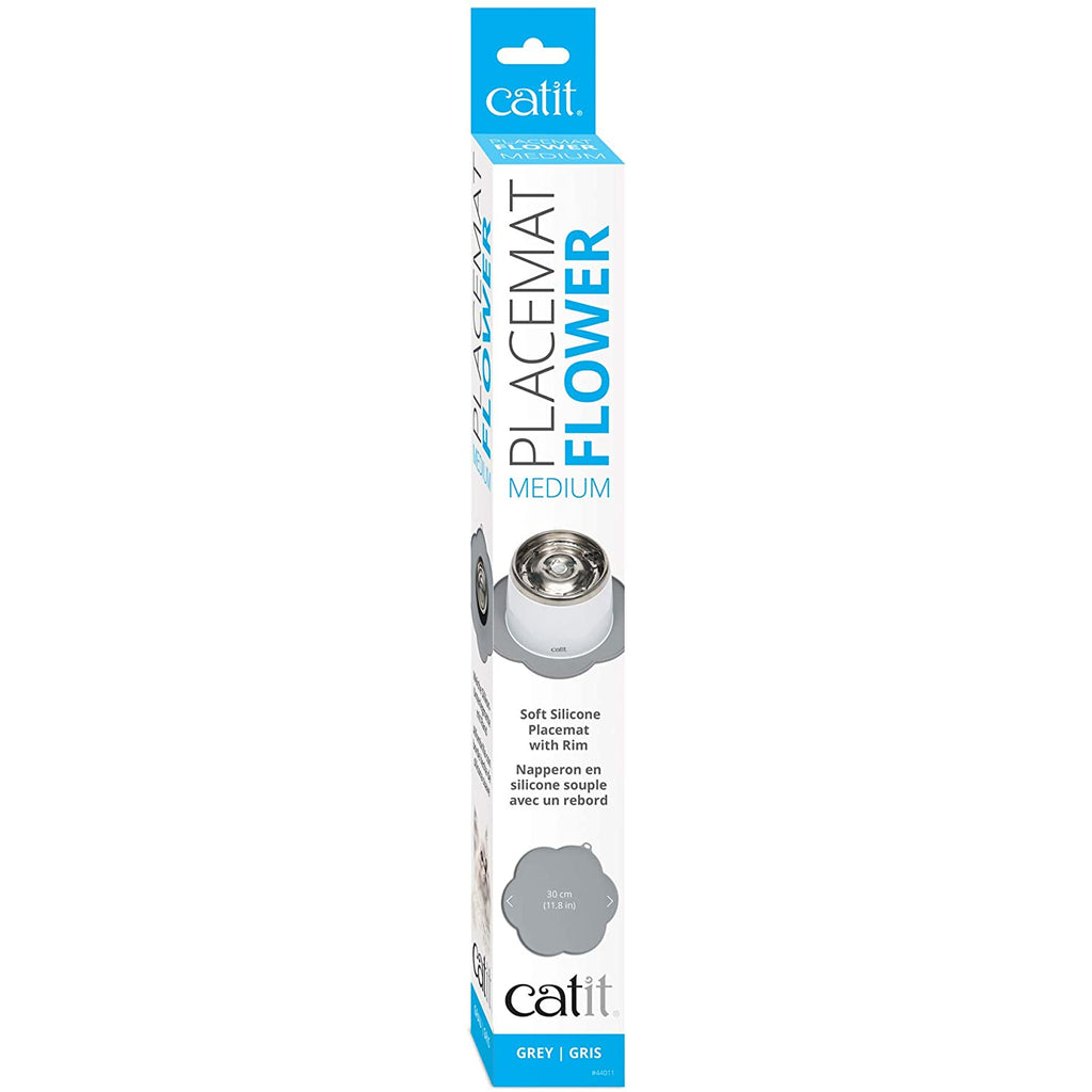 The Catit Flower Placemat is the ideal size for Catit drinking water fountains and feeding dishes (not included).