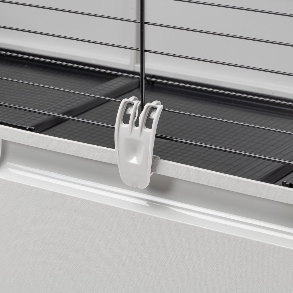 The Modular 3 rabbit and guinea pig cage is extremely versatile thanks to its innovative design with top netting and independent bottom for easy access and maintenance. The solid and robust structure consists of painted metal mesh panels and a plastic base, with connection clips that ensure easy and intuitive assembly without the need for special tools. The high base is designed to hold dirt and litter, keeping the environment clean and tidy. The interior floor has a special non-slip surface to provide additional safety for the animal. The fully removable roof facilitates maintenance and interaction with the animal, providing greater accessibility to all corners of the cage. For more thorough cleaning, the mesh system can be completely detached from the base. Finally, two convenient opening doors allow your pet to exit and explore the surrounding environment.