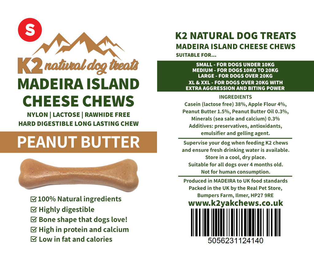 K2 Madeira Island Cheese Chews Peanut Butter - HARD LONG LASTING CHEWS - like Yak chews with fantastic digestibility