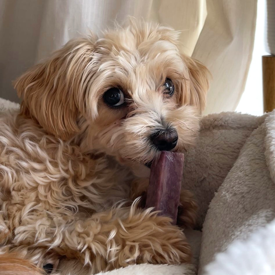 The K2 Blueberry Yak Chew combines the centuries-old tradition of Himalayan yak chews with a fruity twist. Crafted using milk from Nepal and made in India, this durable chew is flavoured with natural blueberry to give your dog a sweet yet safe chewing experience — without any artificial additives.