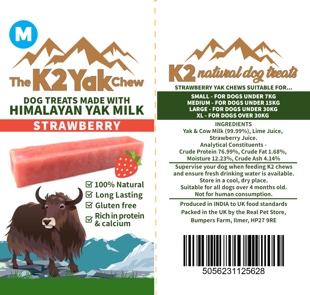 The K2 Strawberry Yak Chew combines the centuries-old tradition of Himalayan yak chews with a fruity twist. Crafted using milk from Nepal and made in India, this durable chew is flavoured with natural strawberry to give your dog a sweet yet safe chewing experience — without any artificial additives.