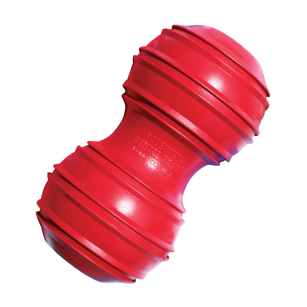 The KONG Dental rubber dog toy is designed for cleaning teeth and gums while giving an appropriate chewing outlet and supporting a dog’s instinctual needs. Made out of KONG Classic’s unique natural red rubber formula, the KONG Dental toy has grooves that help clean teeth. Stuff the inside of the grooves and the toy with your dog’s favorite treats for added enjoyment. Want to extend your dog’s chew time? Stuff with KONG Snacks™ and entice with a dollop of KONG Easy Treat™.