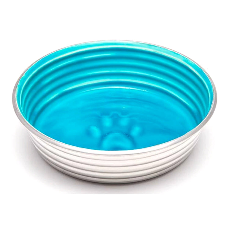 Le Bol Dog Bowls are not only gorgeous, but they are also extremely durable. Created in the style of famous French cookware, these stainless steel bowls have a brightly colored ceramic-like interior. The glazed overstain effect highlights the ribbed walls and embossed paw in the bottom. The integrated rubber base makes them skid and noise-free. And of course, they are top-rack dishwasher safe.