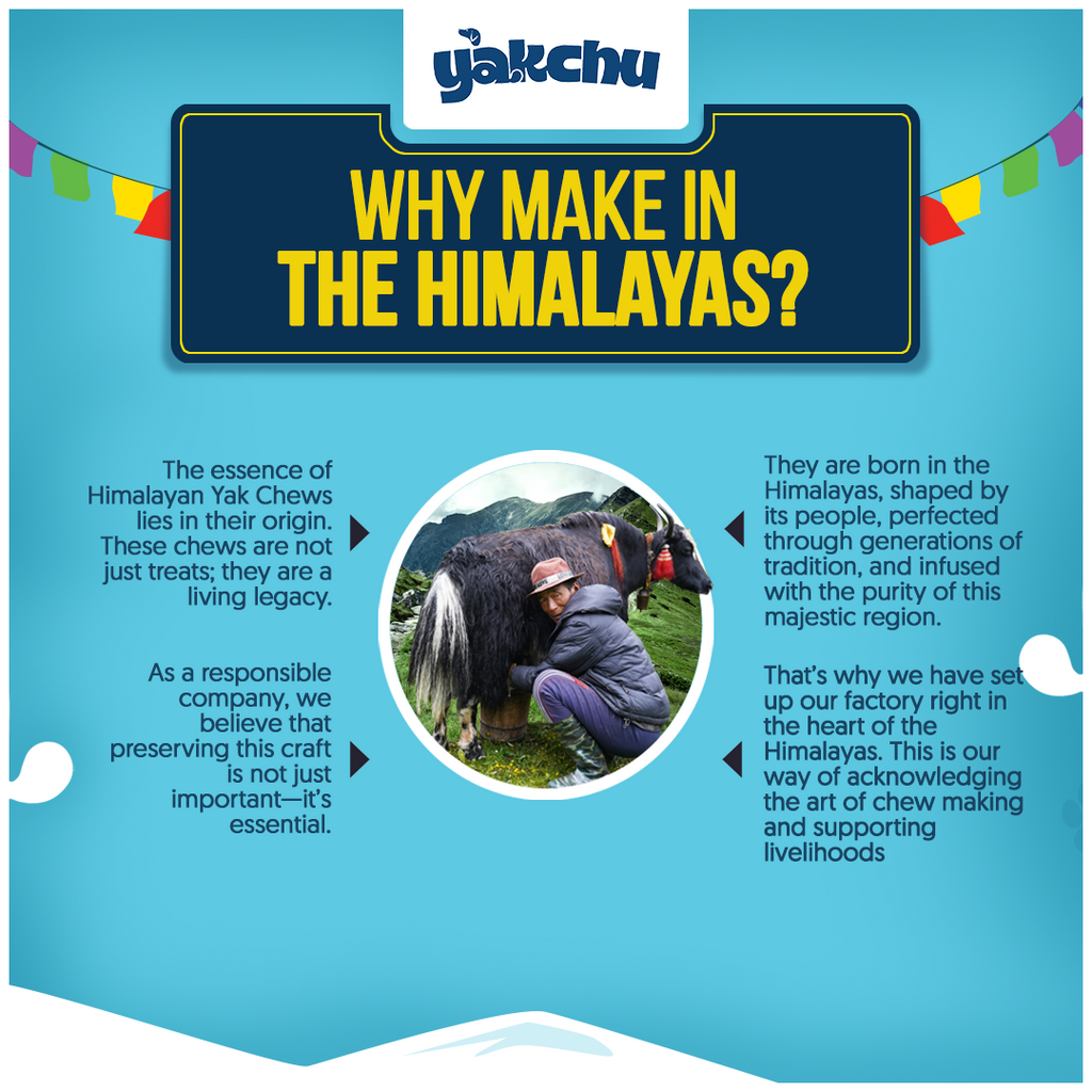 Yakchoo Himalayan Yak Chews are long-lasting, all-natural dog treats handcrafted in the Himalayan hills from yak and cow milk with just a touch of lime, following the traditional chhurpi recipe cherished for centuries. Each high-protein, calcium-rich bar is sun-dried and smoked for over 35 days, creating a firm yet gentle texture that keeps dogs chewing happily while helping to scrape away plaque and tartar for stronger teeth, healthier gums, and fresher breath.